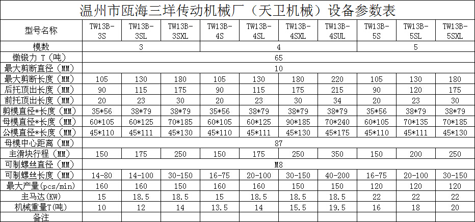 您當(dāng)前的位置:首頁 / 產(chǎn)品中心 / 四模四沖冷鐓機(jī) / └ TW13B(M8)全自動多工位冷鐓機(jī) / TW13B四模四沖多工位冷鐓機(jī)