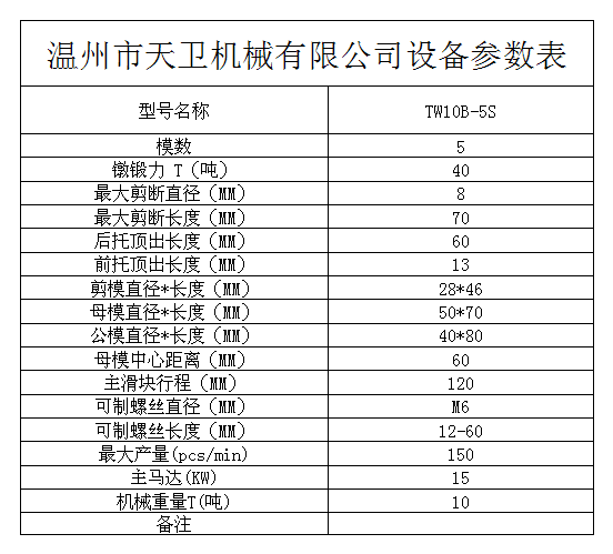 您當前的位置:首頁 / 產(chǎn)品中心 / 五模五沖多工位冷鐓機 / └ TW10B(M6)多工位冷鐓機 / TW10B-5S全自動多工位冷鐓機